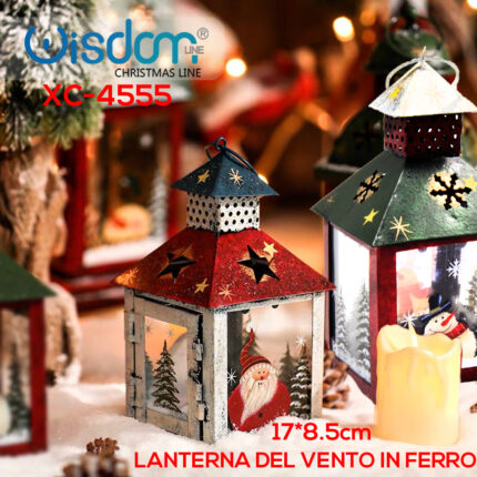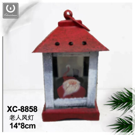 Addobbo decorativo Natalizio lanterna in ferro con Babbo Natale dimensioni 17×8,5cm