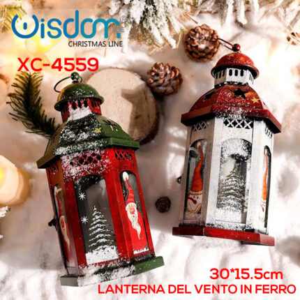 Addobbo decorativo Natalizio lanterna in ferro con Babbo Natale dimensioni 30×15,5cm