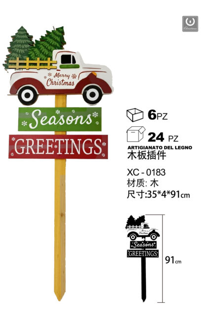 Cartello decorativo natalizio in legno a forma di camioncino ideale per uso esterno dimensioni 35x4x91cm