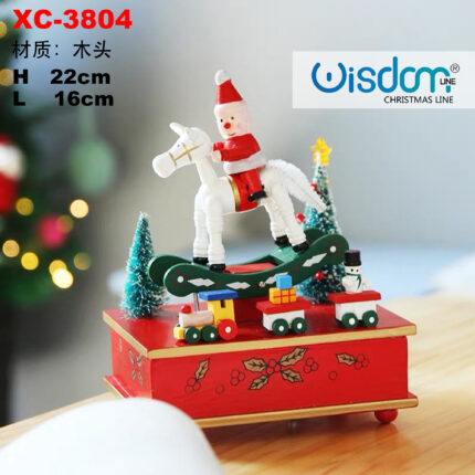 Carillon natalizio in legno cavallo a dondolo e Babbo Natale dimensioni 22x16cm