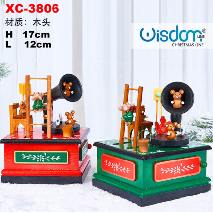 Carillon natalizio rotante in legno a forma di grammofano dimensioni 17x12cm