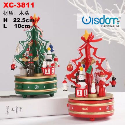 Carillon natalizio rotante in legno a forma di albero di natale dimensioni 22,5x10cm