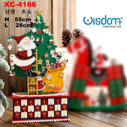 Calendario dell’avvento natalizio in legno a forma di Albero+Babbo natale con 24 cassetti numerati dimensioni 55x28cm