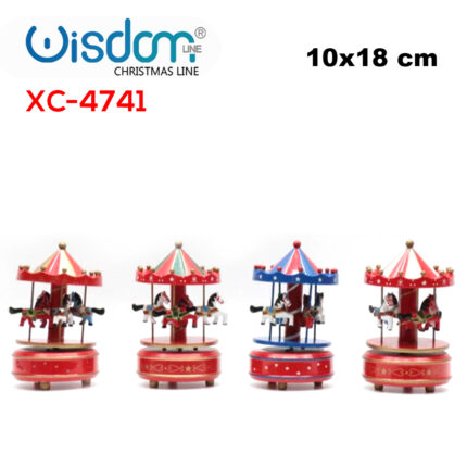 Carillon natalizio giostra in legno con cavalli che ruotano dimensione 20,5×12,5cm