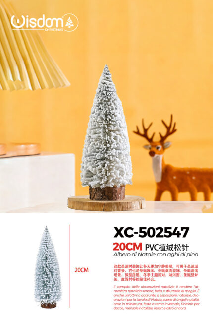 Alberello di Natale decorativo innevato da tavolo materiale pvc effetto legno dimensioni 20cmH