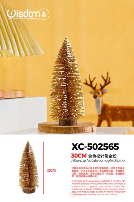 Alberello di Natale decorativo innevato con polvere d’oro da tavolo materiale pvc effetto legno dimensioni 30cmH