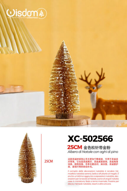 Alberello di Natale decorativo innevato con polvere d’oro da tavolo materiale pvc effetto legno dimensioni 25cmH