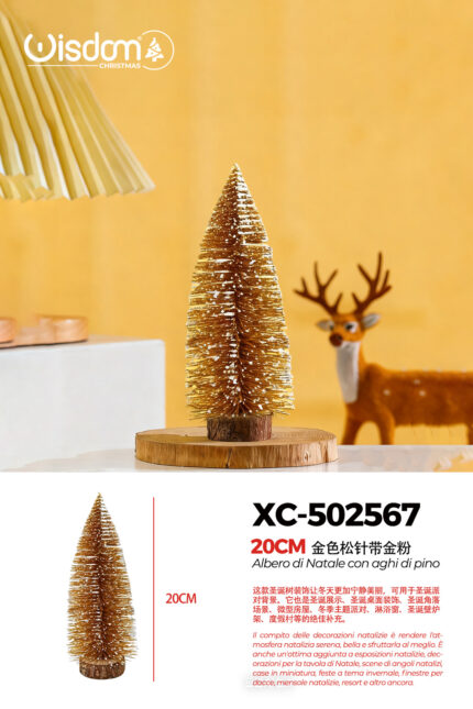 Alberello di Natale decorativo innevato con polvere d’oro da tavolo materiale pvc effetto legno dimensioni 20cmH