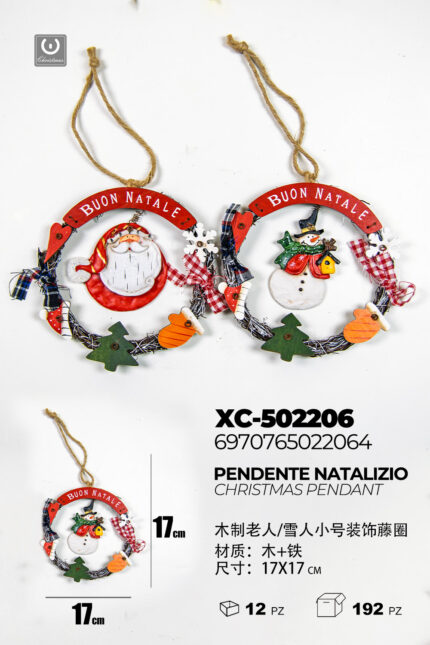 Set Pendenti Natalizi in legno con Babbo Natale o Pupazzo di neve da appendere fuori la porta dimensioni 17x17cm