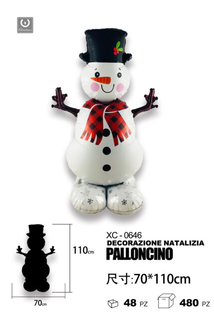 Palloncino decorazione natalizia a forma pupazzo di neve ideale per addobbi dimensione 70x110cm