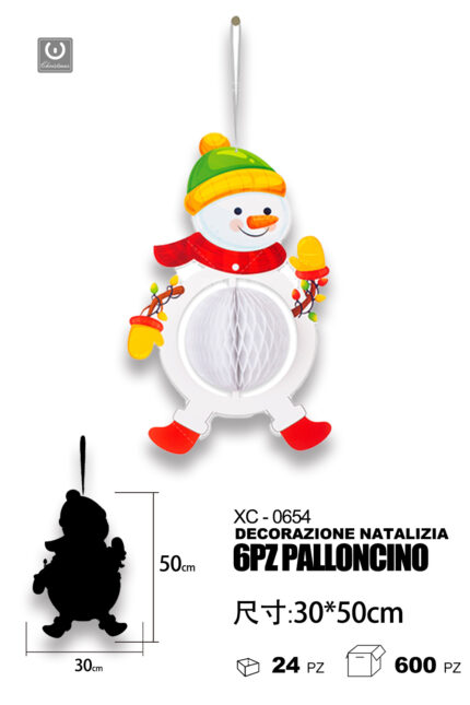 Set da 6 palloncini natalizi a forma pupazzo di neve ideale per addobbi dimensione 30x50cm