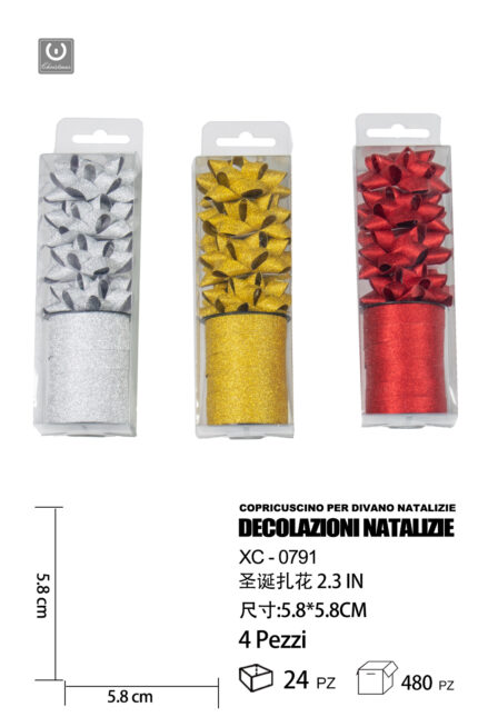 Set fiocchi decorativi natalizi con brillantini dimensioni 5,8×5,8cm