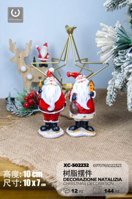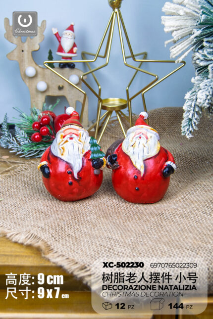 Coppia decorazioni Natalizie Babbo Natale in resina dipinti a mano dimensione 10x7cm