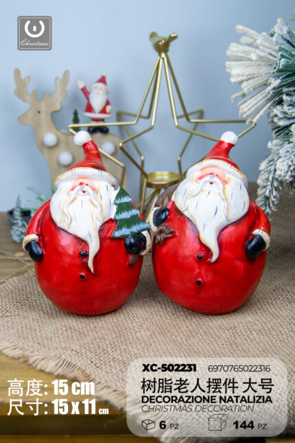 Coppia decorazioni Natalizie Babbo Natale in resina dipinti a mano dimensione 15x11cm