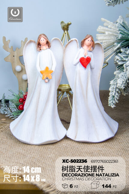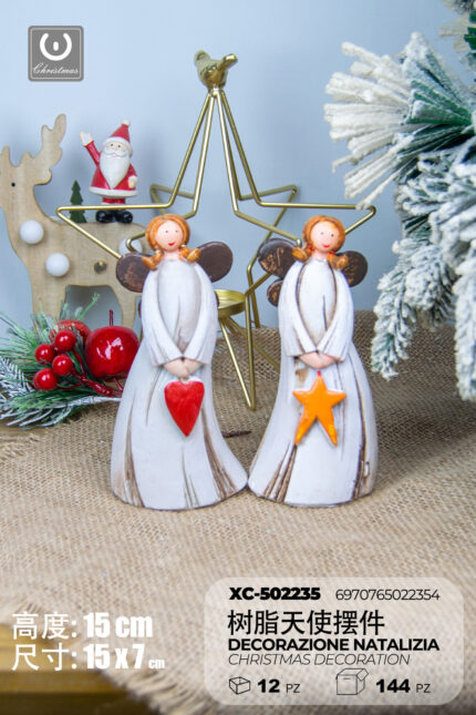 Coppia decorazioni Natalizie Angioletti bianchi in resina dipinti a mano dimensione 15x7cm
