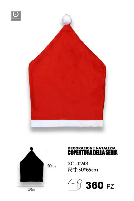 Copri sedia Natalizio rosso a forma di cappello Babbo Natale dimensioni 50x65cm