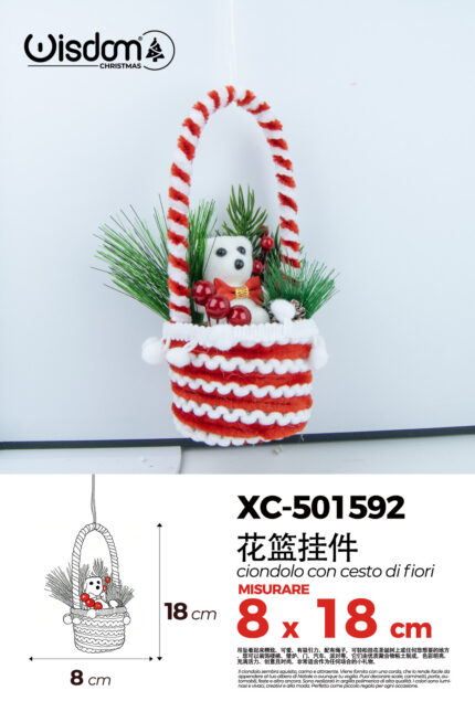 Ciondolo natalizio a forma di cestino con orsetto adatto per alberi o porte dimensioni 8x18cm