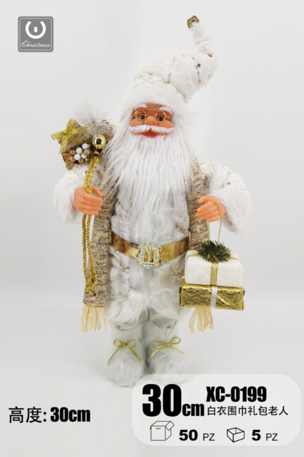 Giocattolo Natalizio Babbo Natale vestito di bianco altezza 30cm