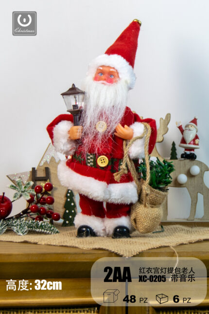 Giocattolo Natalizio Babbo Natale porta regali con lanterna che canta e balla altezza 32cm alimentazione a batteria (2pile non incluse)