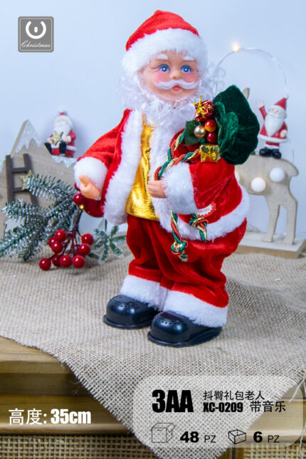 Giocattolo Natalizio Babbo Natale porta regali che canta e balla altezza 35cm alimentazione a batteria (3pile non incluse)