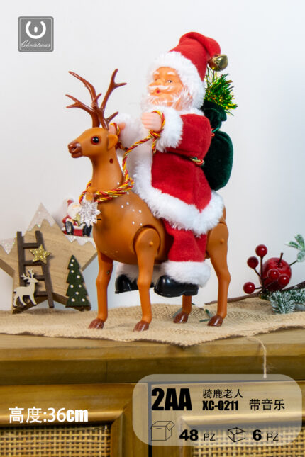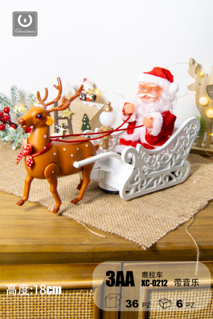 Giocattolo Natalizio Babbo Natale con renna che canta e balla altezza 36cm alimentazione a batteria (2pile non incluse)