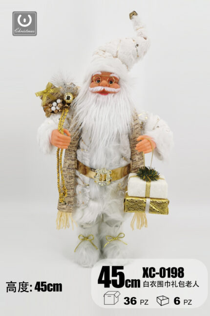 Giocattolo Natalizio Babbo Natale vestito di bianco altezza 45cm