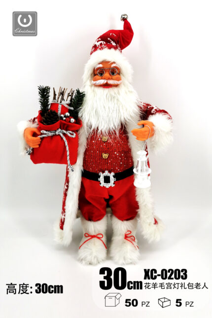 Giocattolo Natalizio Babbo Natale vestito di rosso con regali altezza 30cm