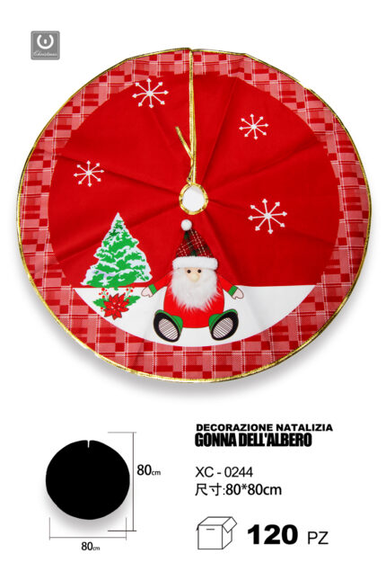 Decorazione natalizia gonna copri base per albero di natale materiale in tessuto design rosso con babbo natale dimensioni 80x80cm