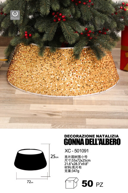 Decorazione natalizia gonna copri base per albero di natale in tessuto paillettes colore oro dimensioni 55x72x25cm