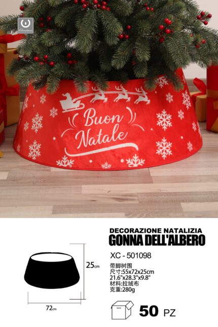 Decorazione natalizia gonna copri base per albero di natale scritta Buon Natale tessuto morbido dimensioni 55x72x25cm