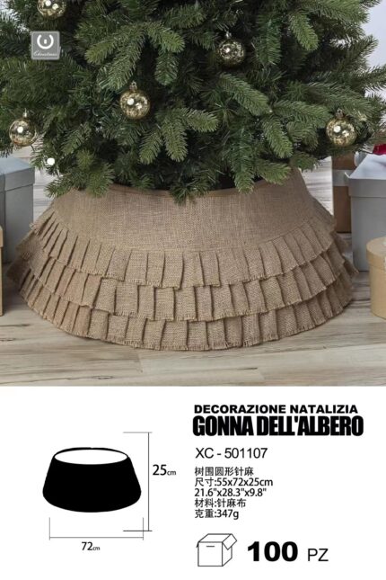 Decorazione natalizia gonna copri base per albero di natale materiale juta color beige dimensioni 55x72x25cm