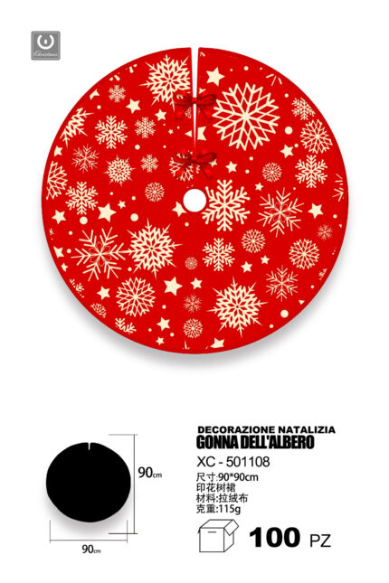 Decorazione natalizia gonna copri base per albero di natale materiale in tessuto design rosso con fiocco di neve dimensioni 90x90cm