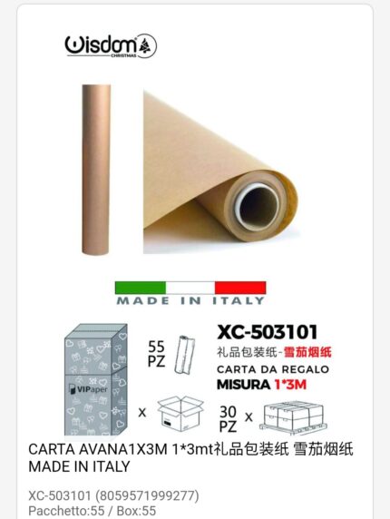 Rotolo carta da regalo colore avana dimensioni 1x3Metri