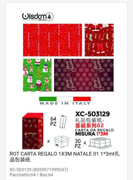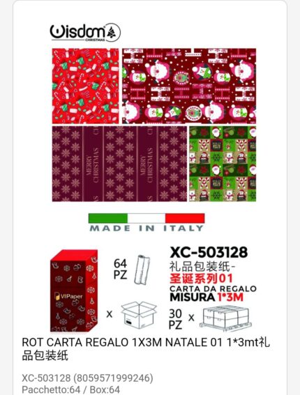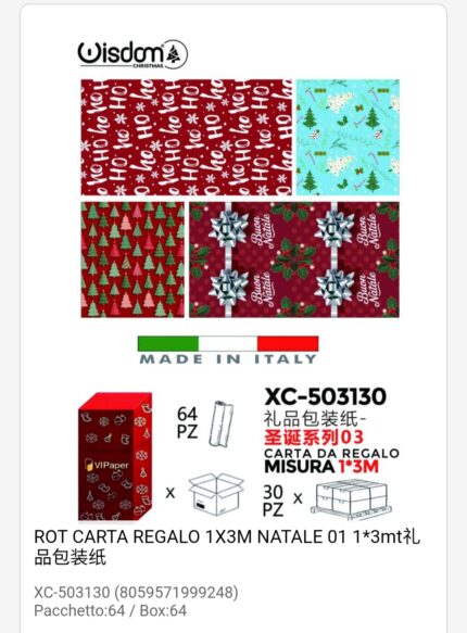 Rotoli carta da regalo natalizi in varie fantasie assortite dimensioni 1×3 Metri
