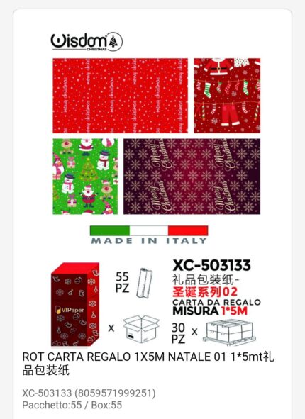 Rotoli carta da regalo natalizi in varie fantasie assortite dimensioni 1×5 Metri