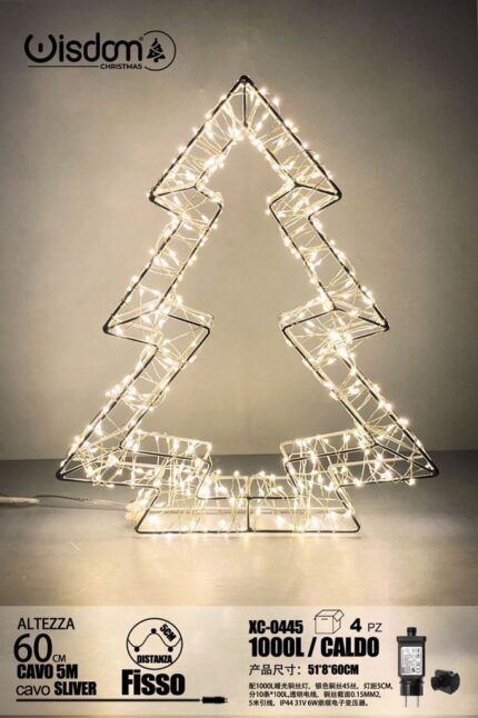 Albero 3D filo di rame Argentato, 1000 LED luce Calda ,cavo trasparente ,filo di acciaio sfaccettato, 60 cm