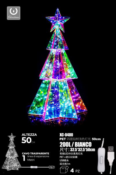 Albero di Natale pellicola Iridescente, 200LED , luce Bianca , 50cm, attacco USB