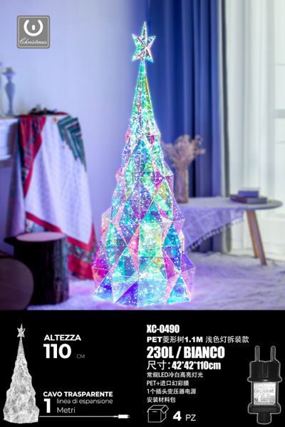 Albero di Natale pellicola Iridescente, 230 LED , luce Bianca , 110cm, attacco USB