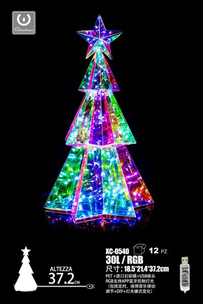 Albero di Natale pellicola Iridescente, 30LED, luce RGB, 37,2cm, attacco USB
