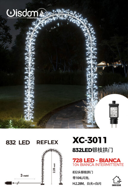 Arco luminoso 832 LED Reflex luce calda fissa e intermittente 2,3 metri di altezza Adatto per uso interno/esterno