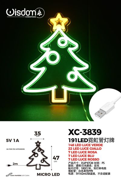Figura luminosa 191 LED ,Albero di Natale, 47×35 cm, attacco USB