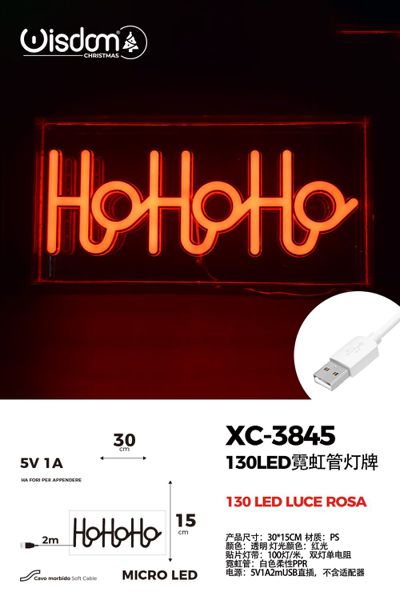 Figura luminosa 130LED,scritta HOHOHO rossa 15x30cm, attacco USB