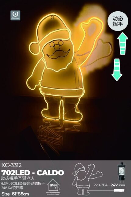 Figura luminosa Babbo Natale con Braccio in movimento, luce Calda 702 LED , 61×85 cm , 24V 6W