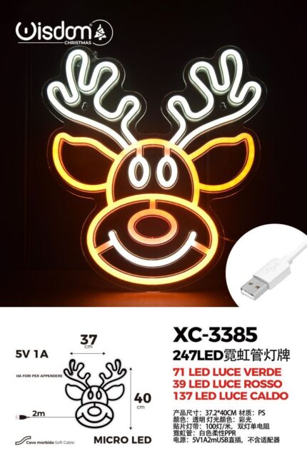 Figura luminosa Alce 247 LED , 40×37 cm, attacco USB
