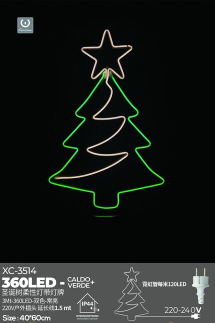 Figura luminosa Albero di Natale 360 LED luce Calda e Verde, 40×60 cm
