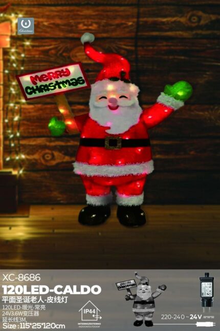Figura luminosa Babbo Natale 3D con in mano cartello 120 LED Caldo, 115x25x120 cm