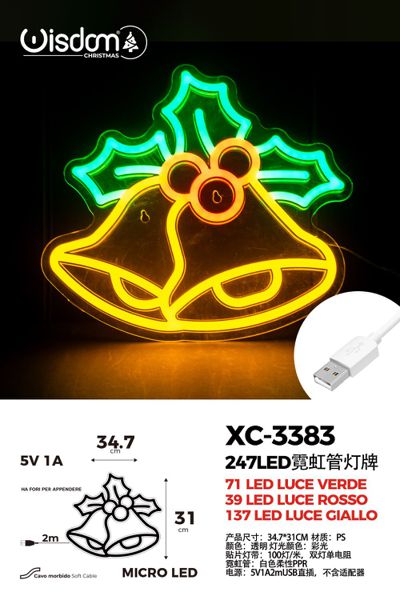 Figura luminosa Campane 247 LED Verde Rosso Giallo ,31×34,7 cm , attacco USB