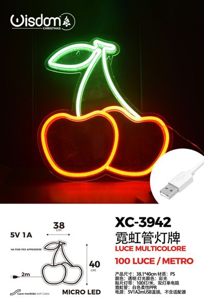Figura Luminosa Ciliegie 20×13 cm , 5V 1A , Attacco USB