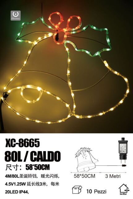 Figura luminosa Campane Natalizie 80 LED luce Calda, 58×50