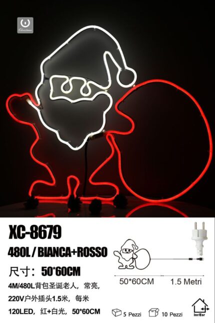 Figura luminosa Babbo Natale con Sacco , 480 LED Bianco e Rosso, 50×60 cm